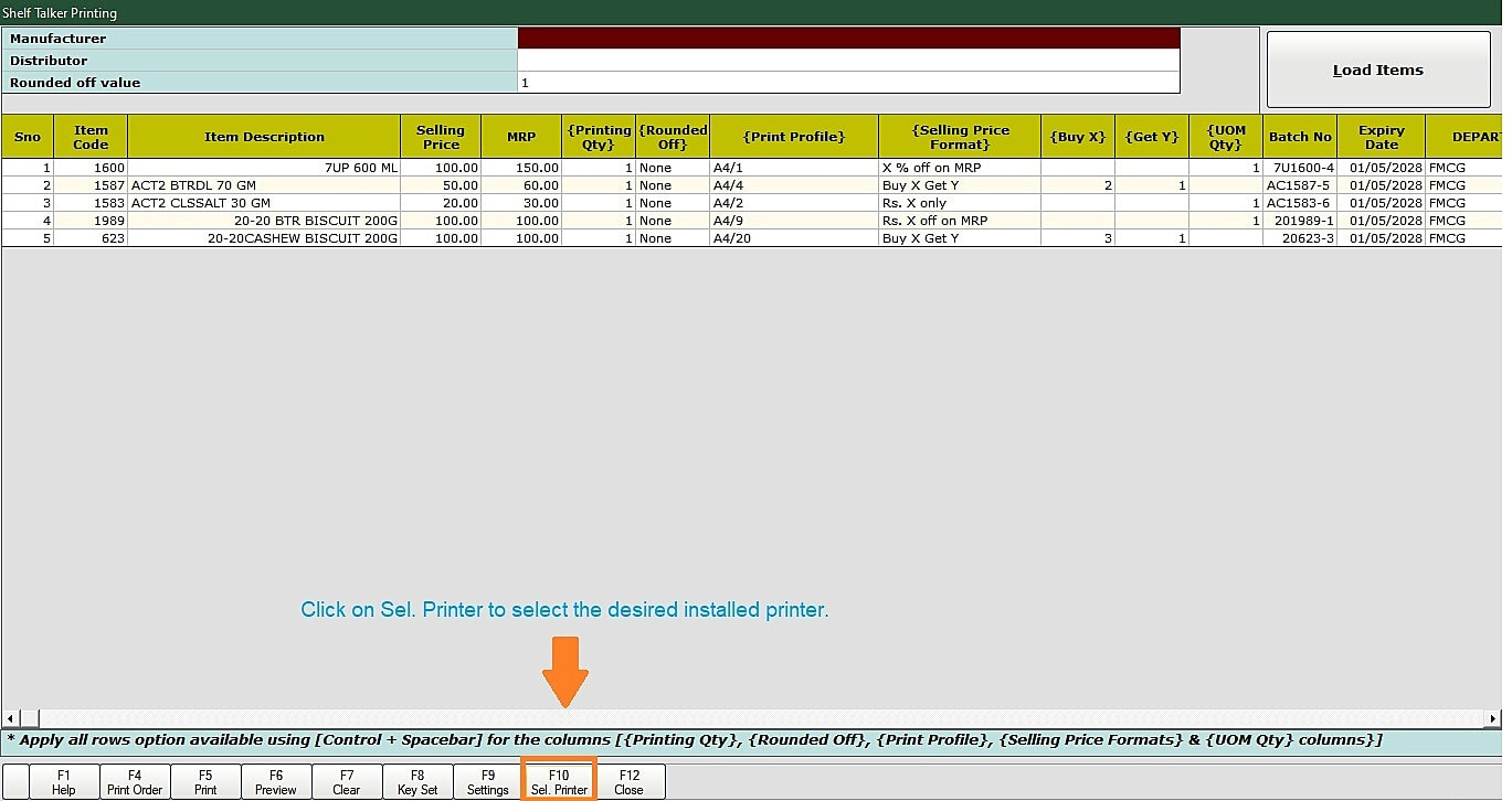 Step 1: Click on [Sel. Printer] button to select the desired installed printer.