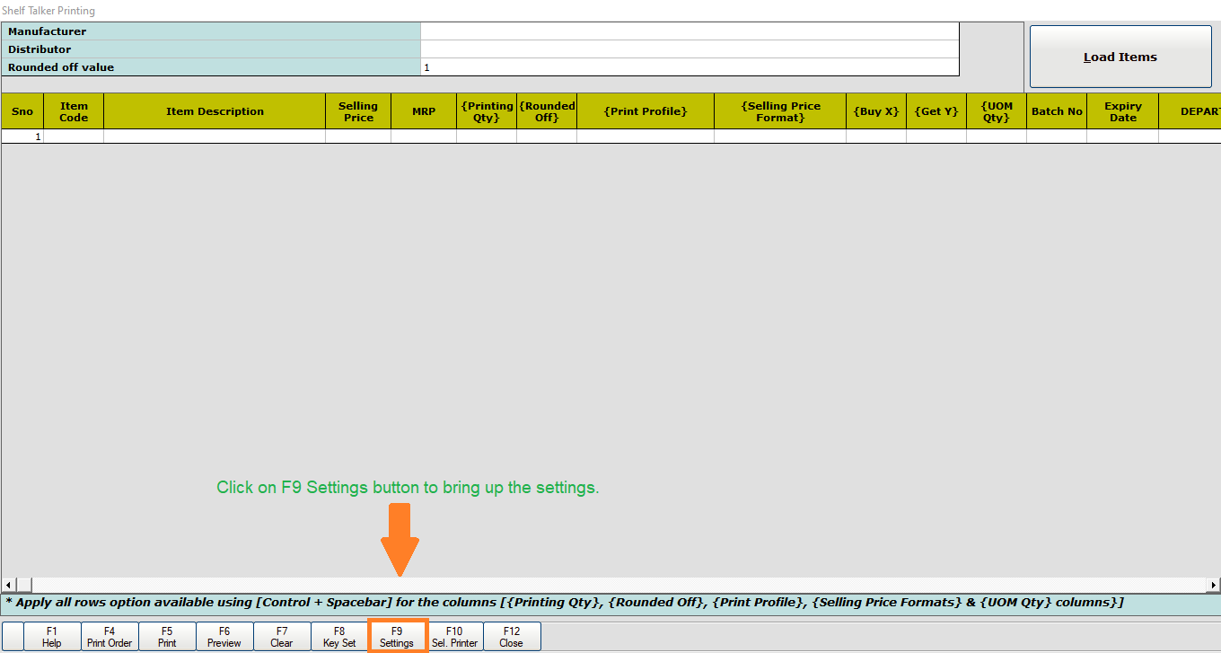 Step 1: Click on [F9 Settings] button to bring up the settings.