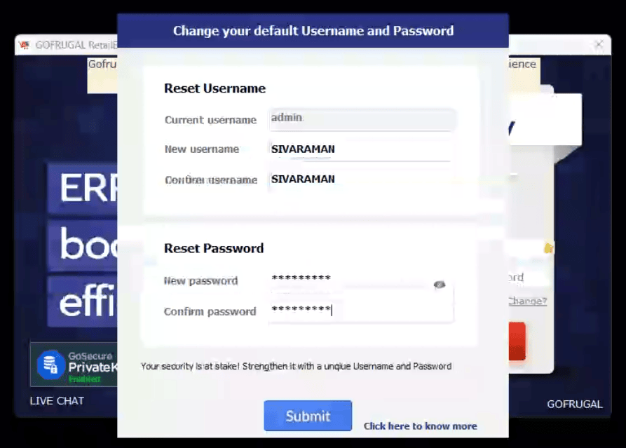 19. After the restart, open the RPOS for the first time and then set up the username and the password for the admin user.