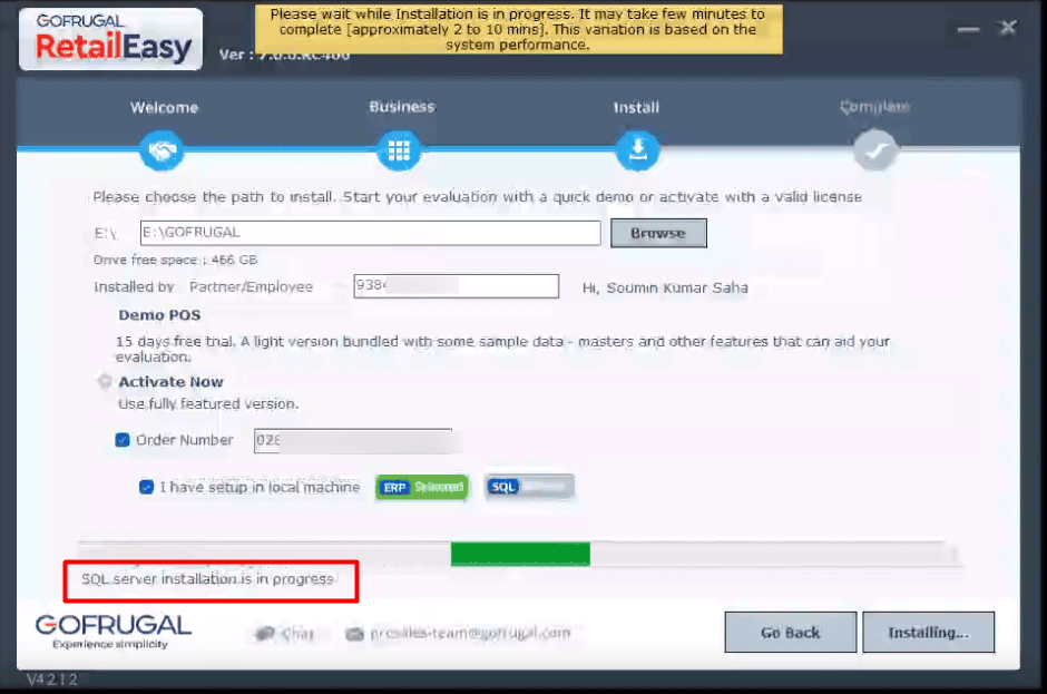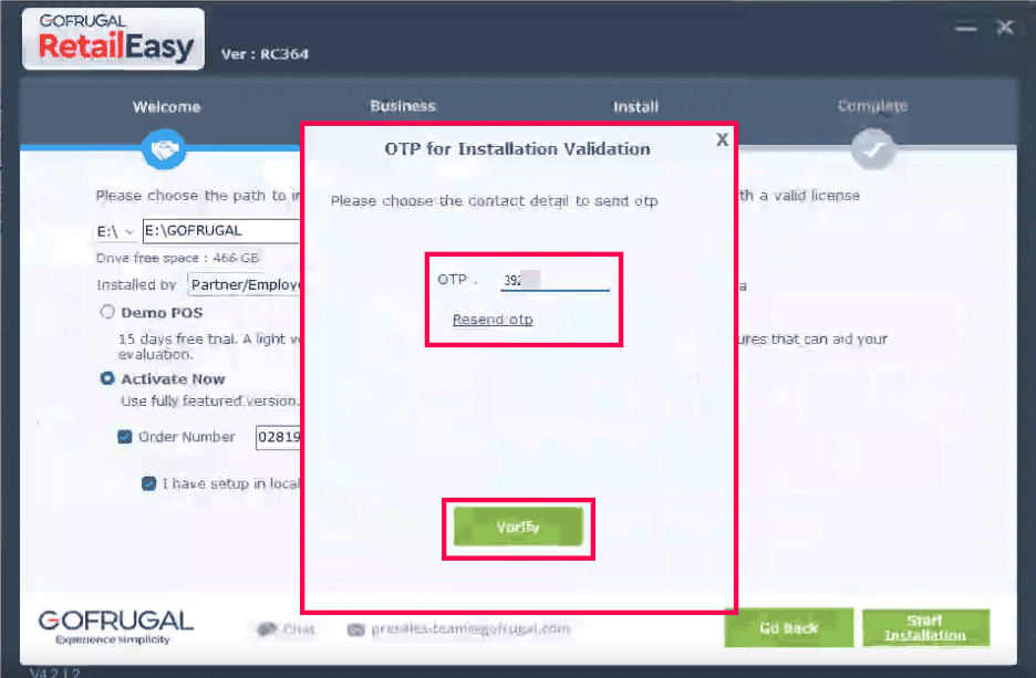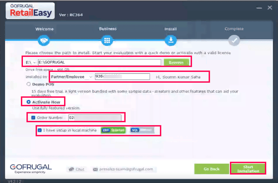 Put the partner/employee details, and then click on the "Start Installation" button.