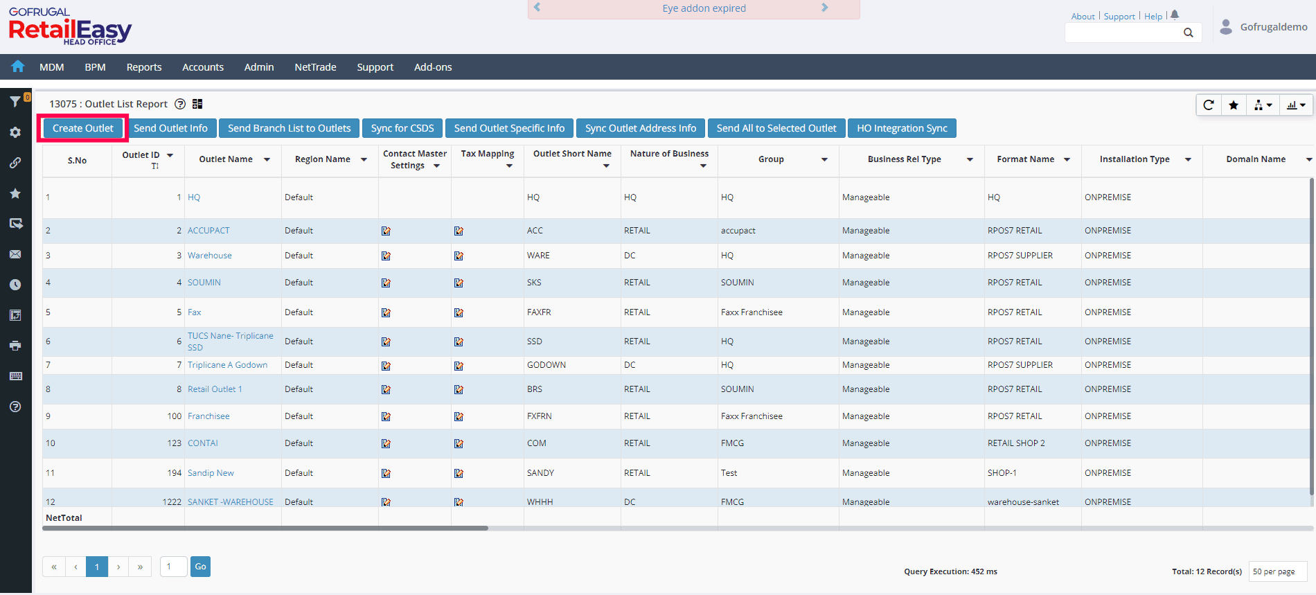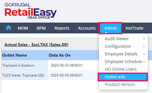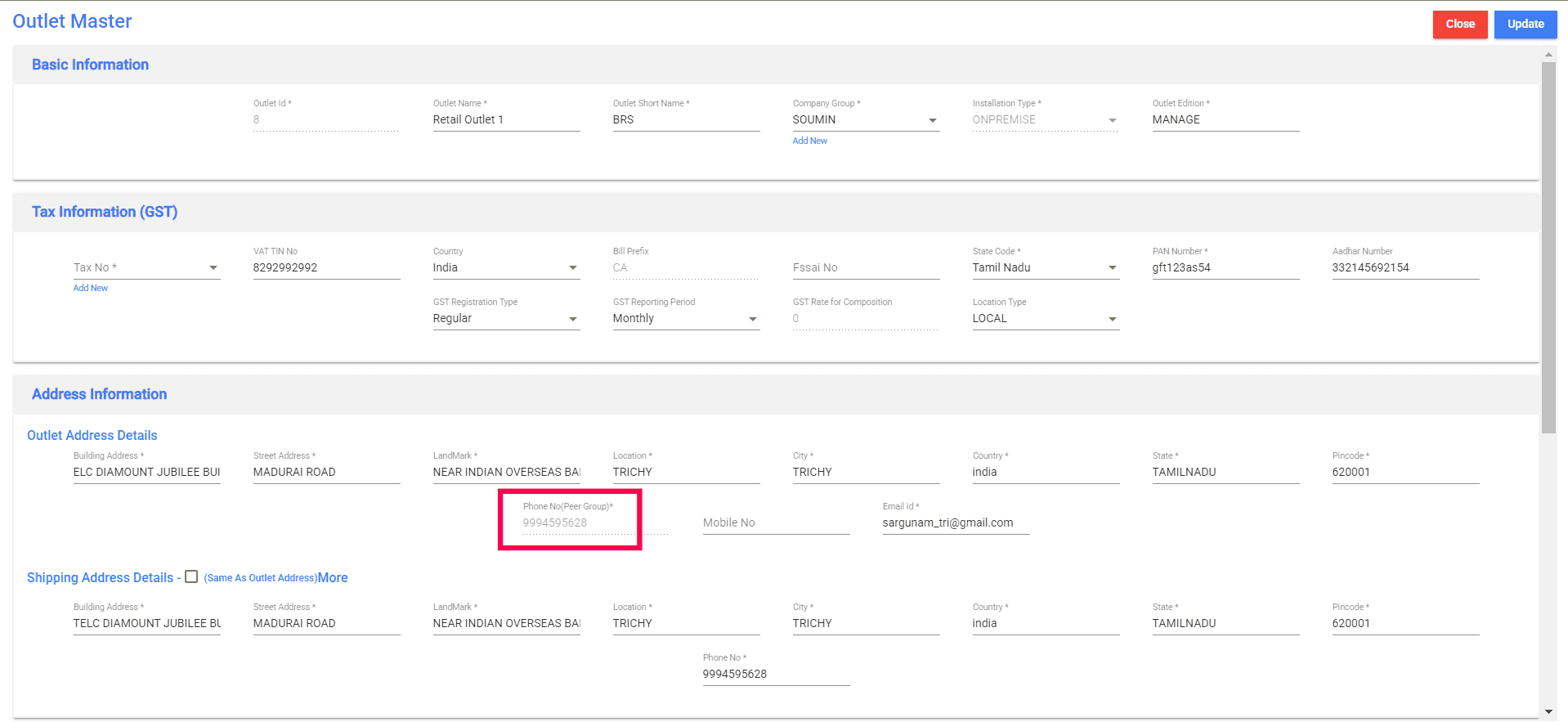 Note: While creating the outlet, use a unique Phone number (Peer Group). This is the identifier for the NetTrade to communicate with the HQ.