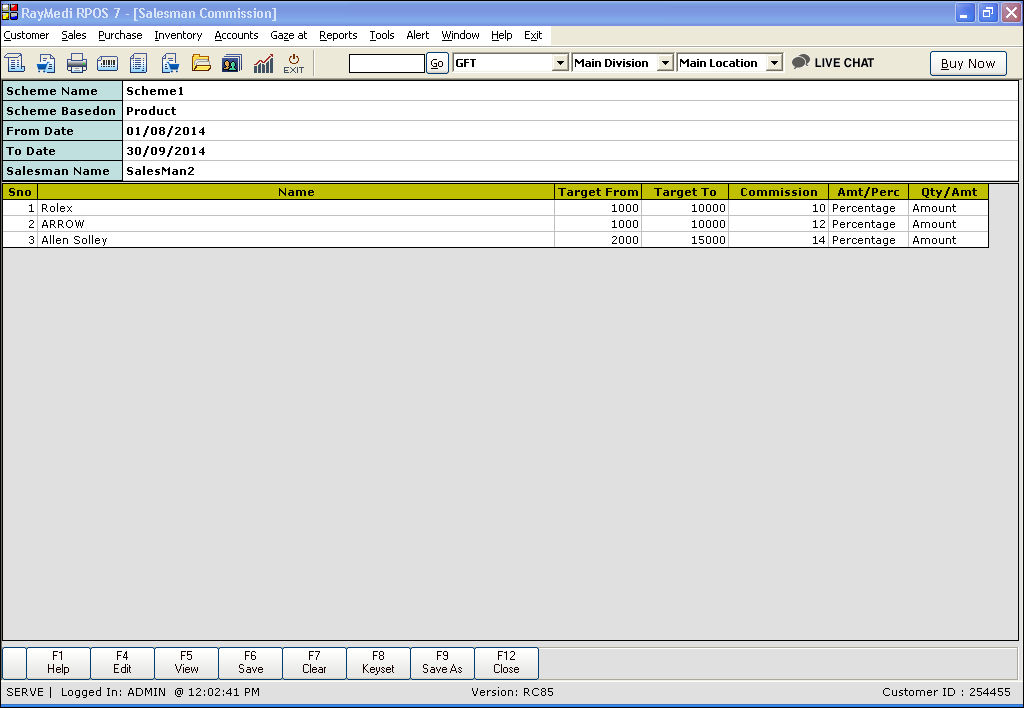 Use the Salesman Commission screen to provide scheme based commissions to the sales person.