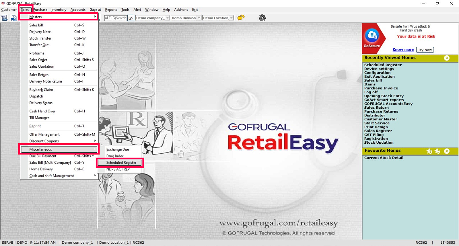 Step 1: Go to Sales > Miscellaneous > Schedule Register
