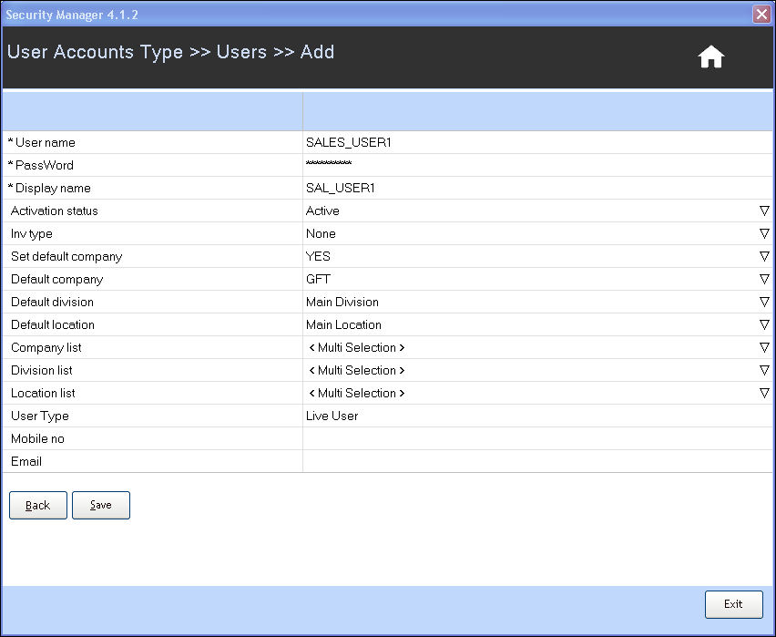 To know more on entering the fields, refer the section Adding a new user.