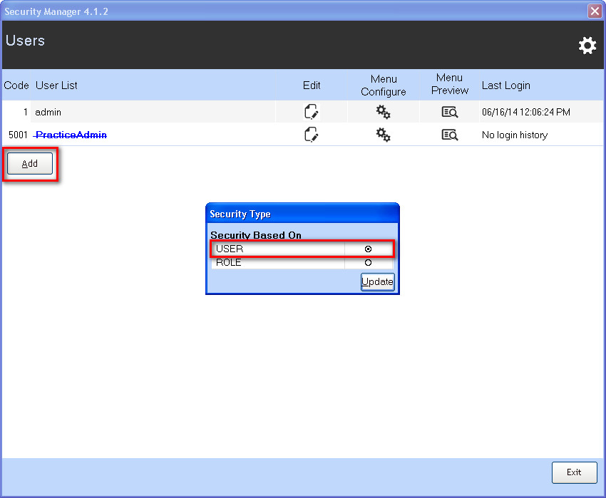 n. In the User Type field, press ENTER or F2 key to select from the options below: