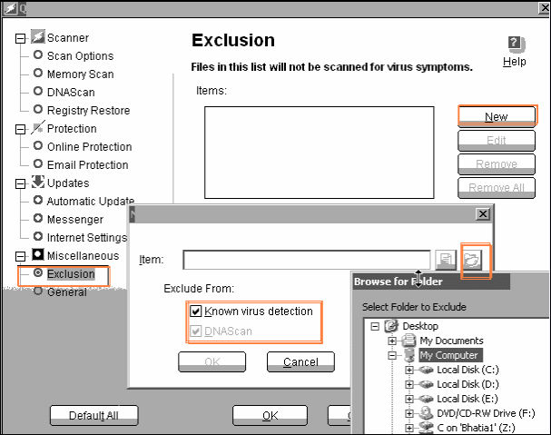 2.Select Exclusion from Miscellaneous and click NEW and enable both tick mark under Exclude from