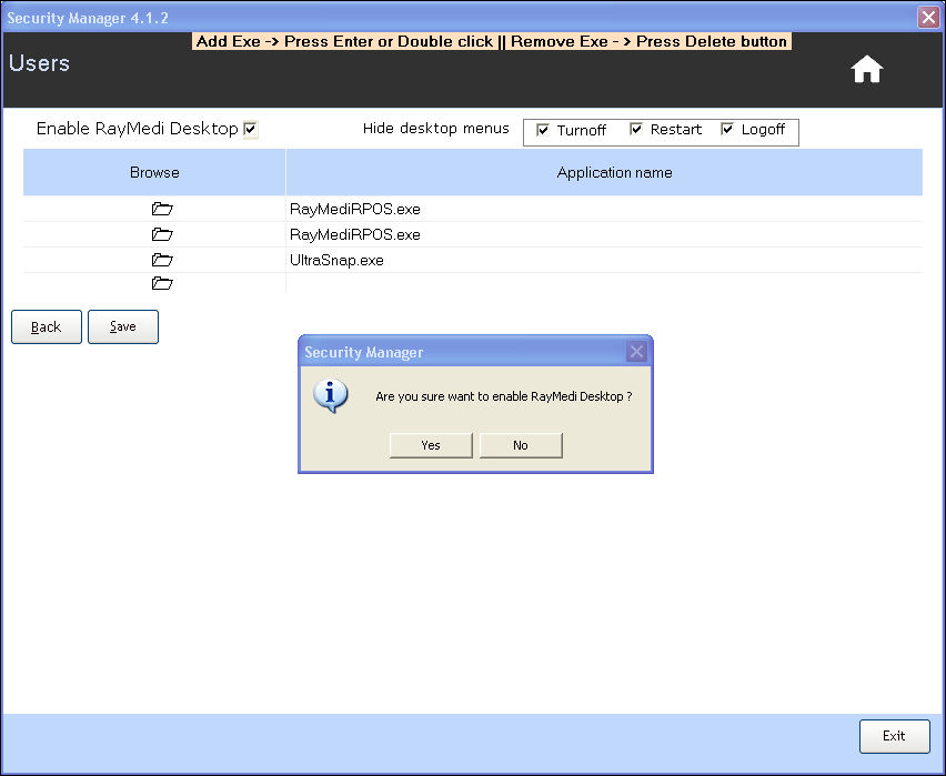 7. A confirmation message 'Are you sure want to enable Raymedi Desktop?' is displayed.