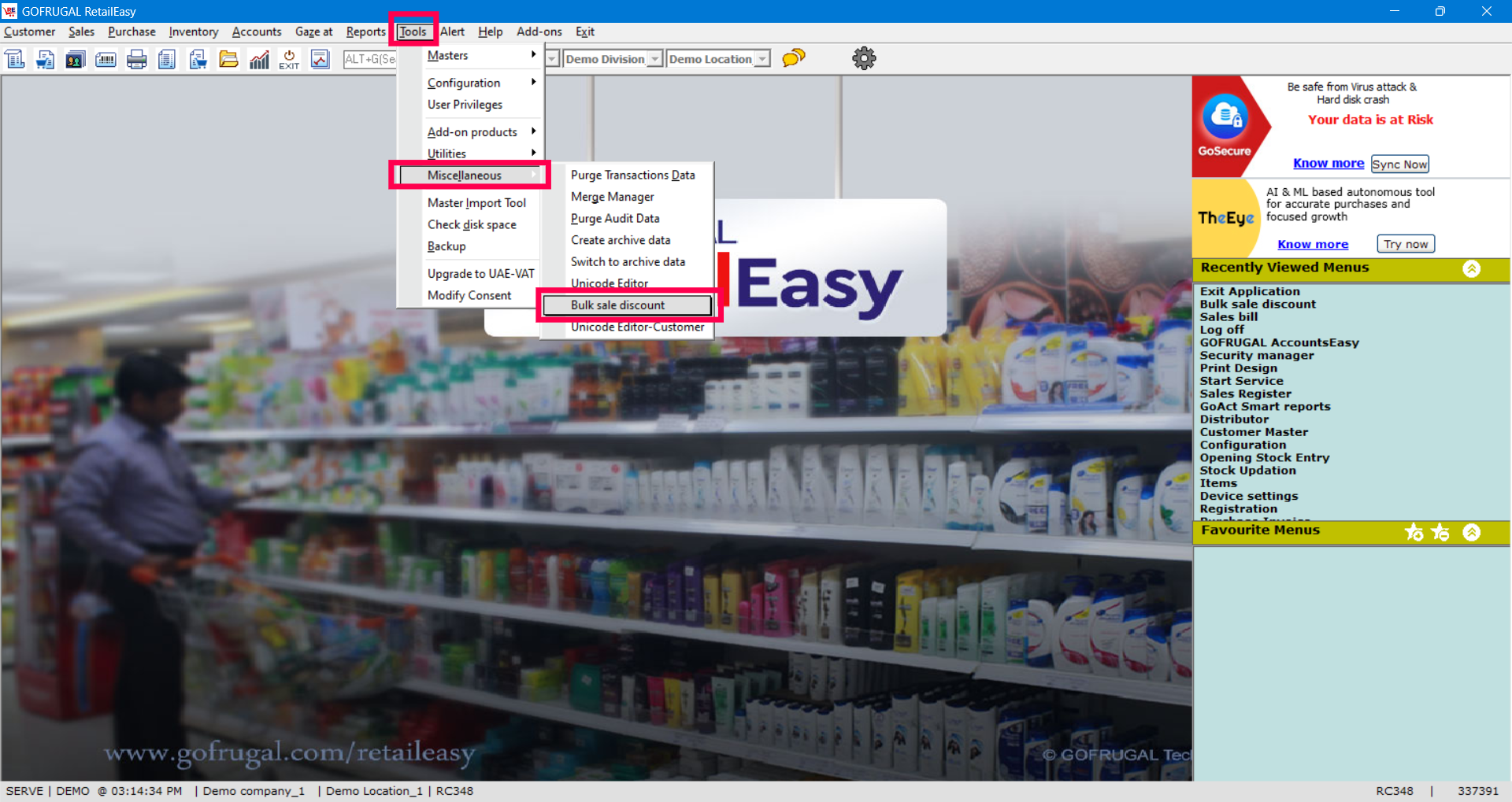 Step 1: Go to Tools > Miscellaneous > Bulk Sale Discount