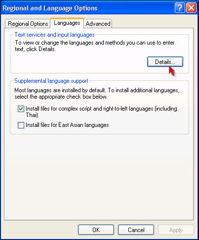 4. Click Details. The Text Services and Input Languages screen will be displayed. By default, English language is available in the list.