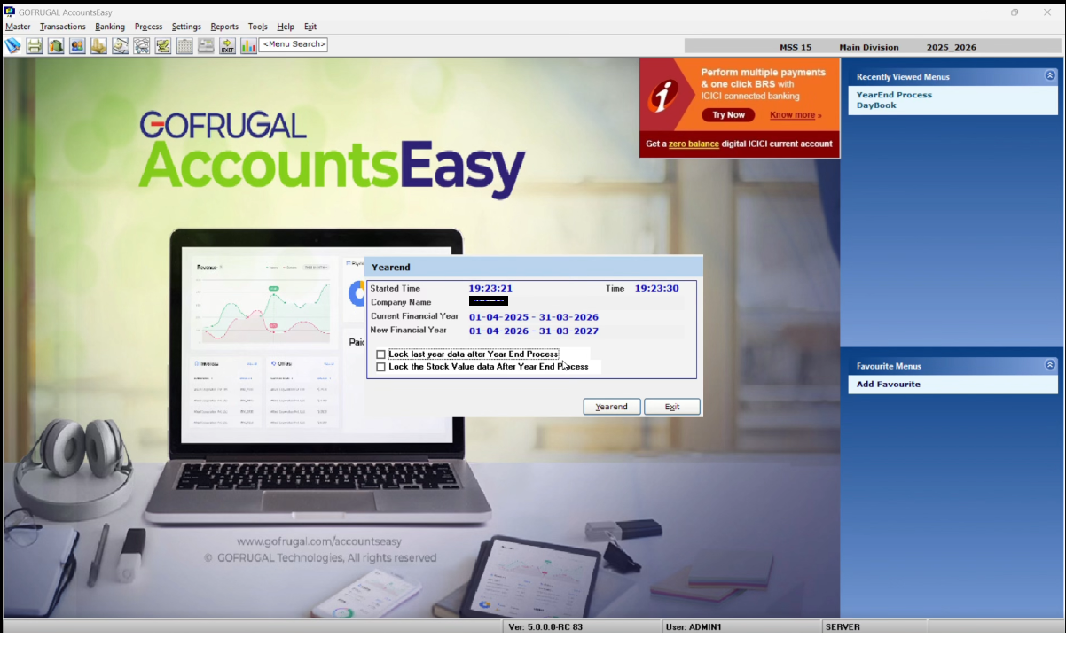 If you wish to start with fresh accounts, do not perform the Year Begin Process. Simply select the current financial year (2026-2027) and begin entering new transactions. All old transactions will not carry over to the current financial year.
