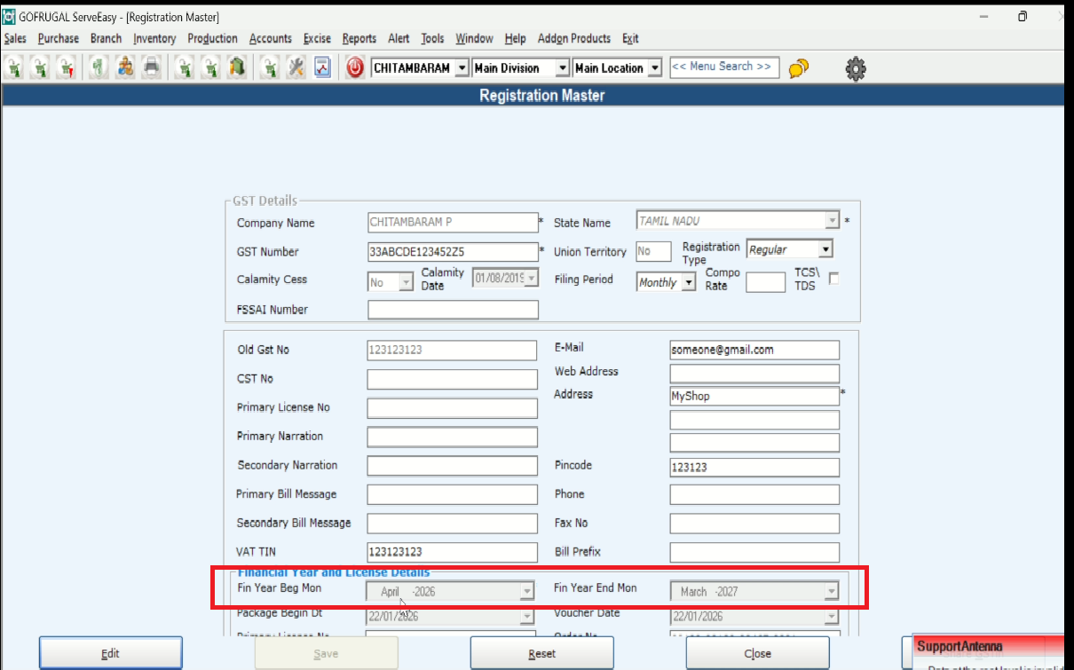 In the Registration Master, you should find the Financial Year Begin / End as "APRIL 2025 to MARCH 2026".