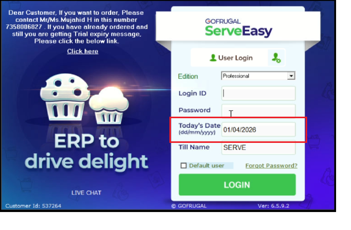 Step 3: A message box will appear stating "GOFRUGAL ServeEasy Year End process completed." Click "OK" to acknowledge.
