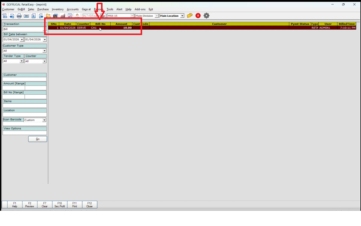 Step 2: After filling in the left-hand side filters, click on the "Go" button, then you will be able to get the invoice number on the screen.