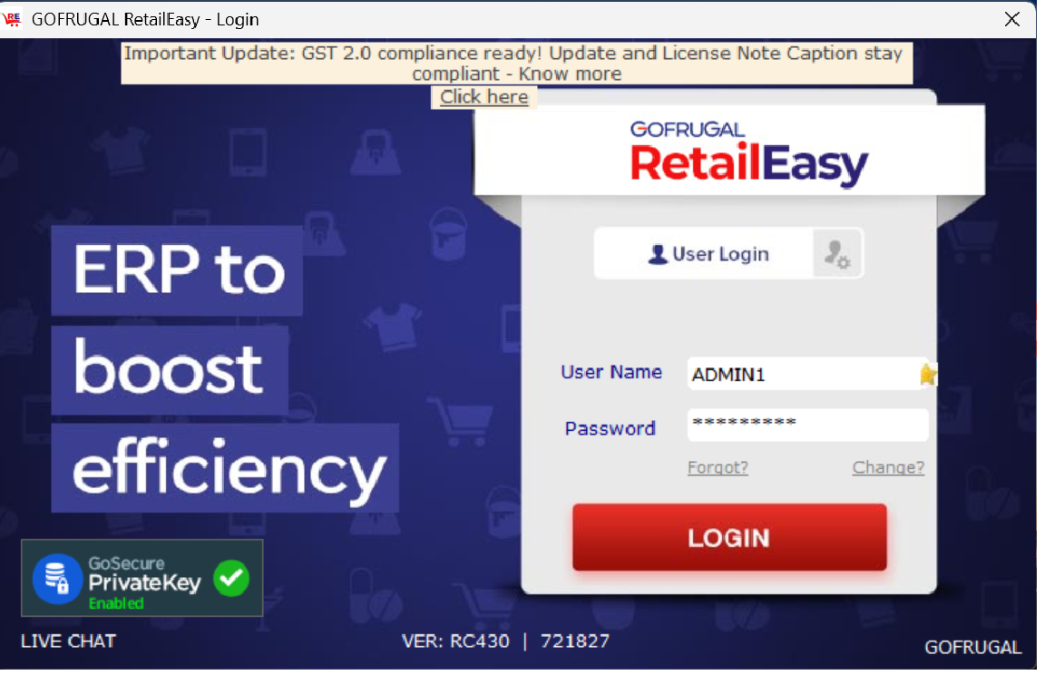 Log in to the RetailEasy application.
