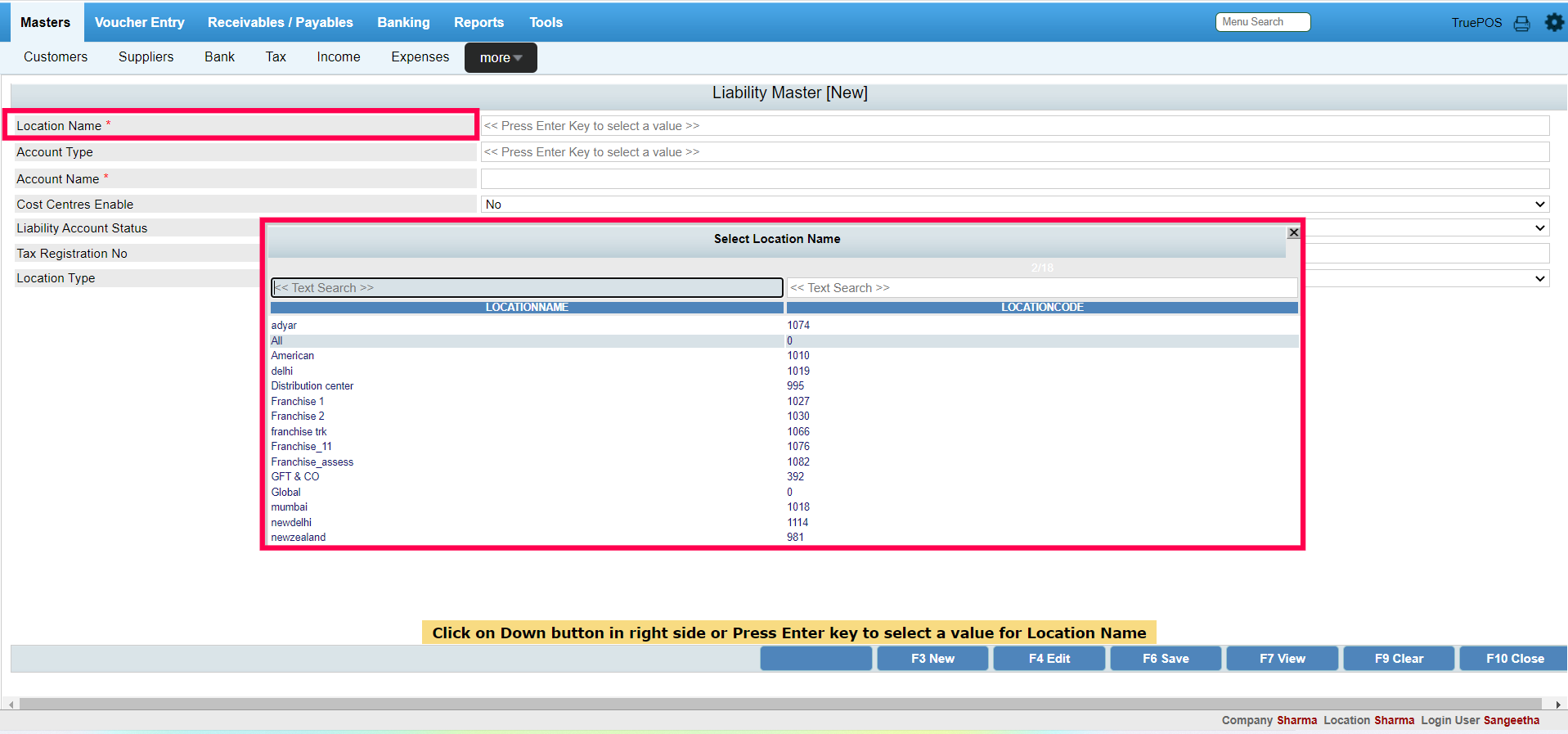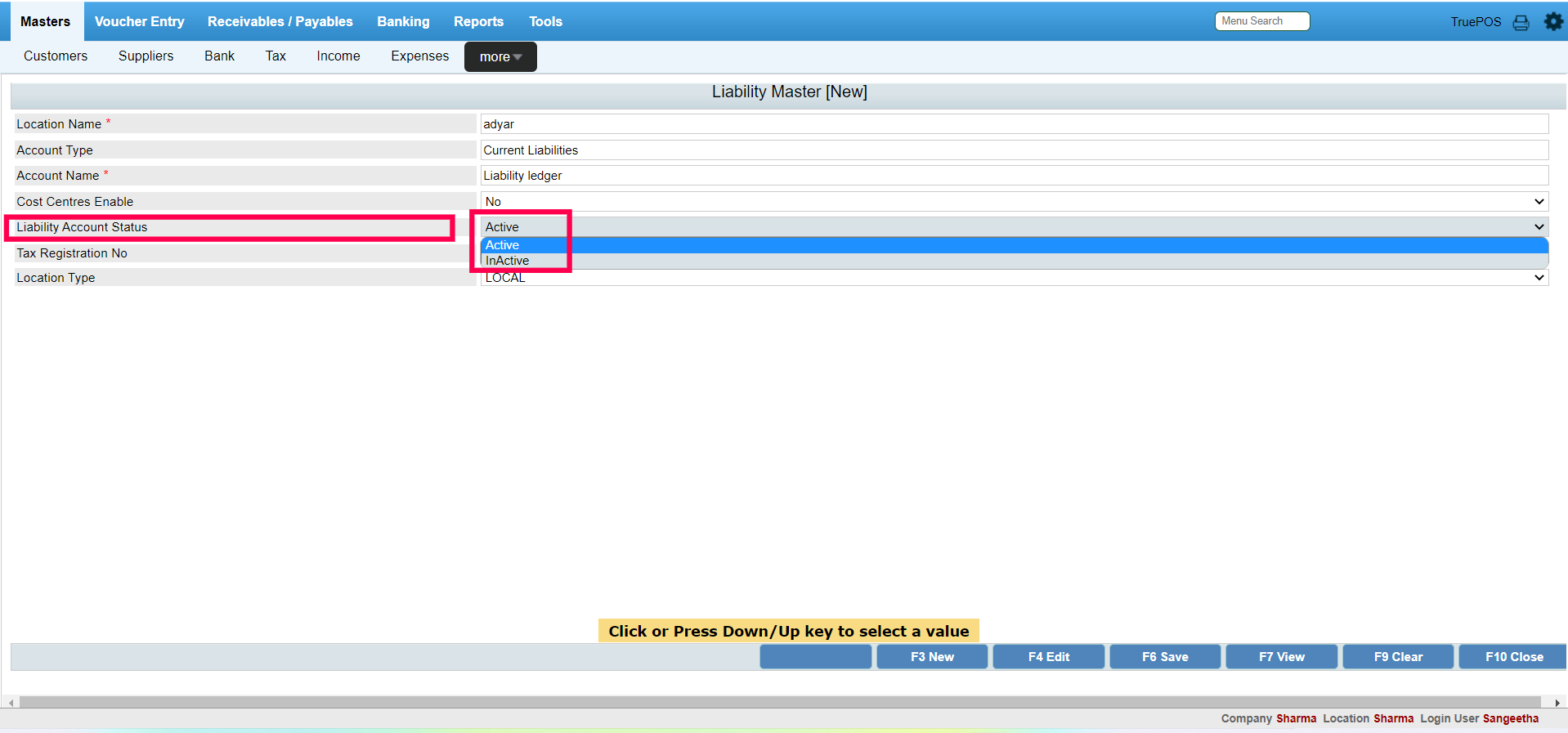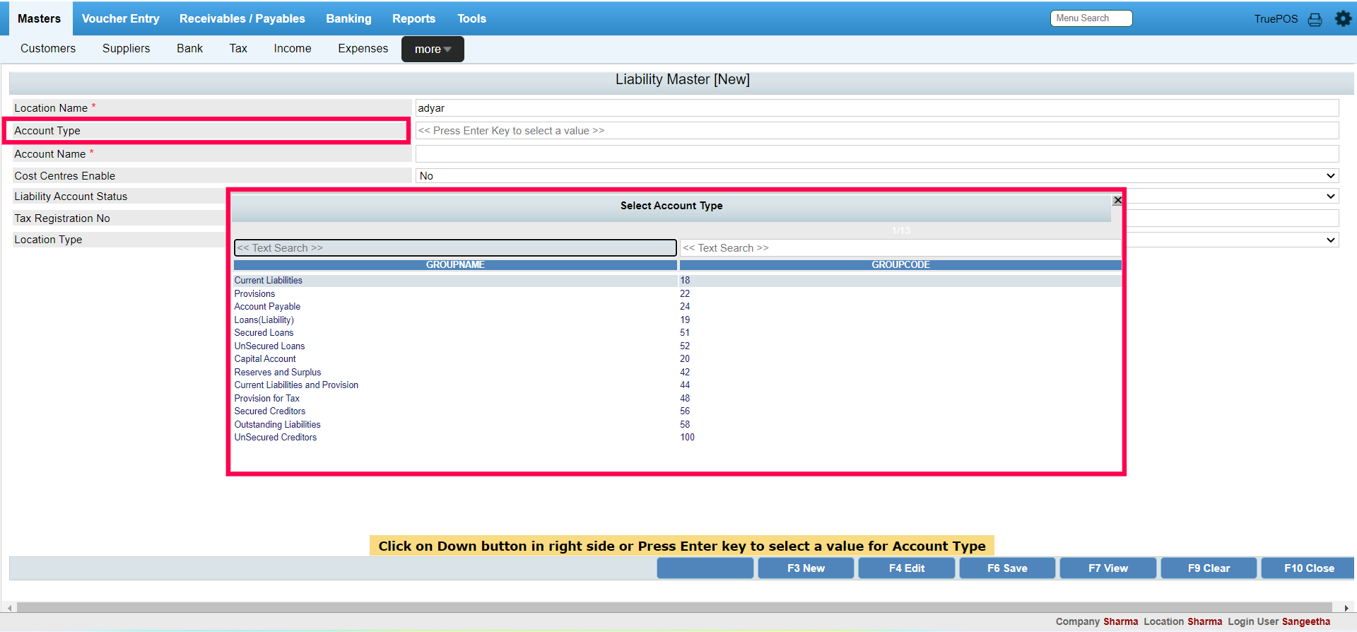 Step 8 : Press F6 to save the liabilities ledger.
