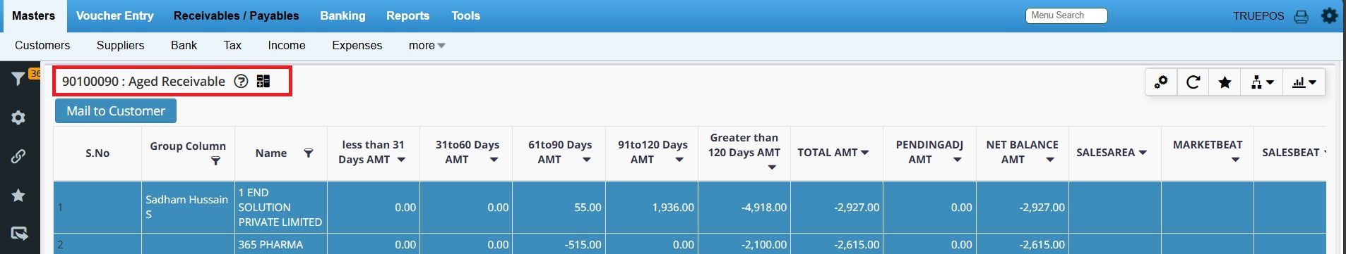 The Aged Receivable report shows how many days a receivable amount is pending against a credit sales bills.