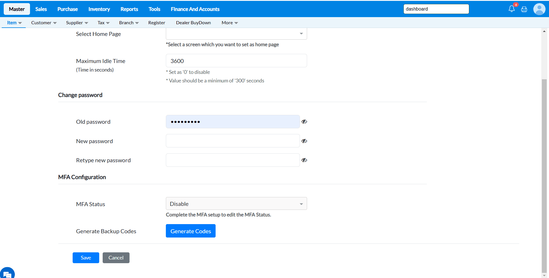 Click Save to save the new password and implement the changes.