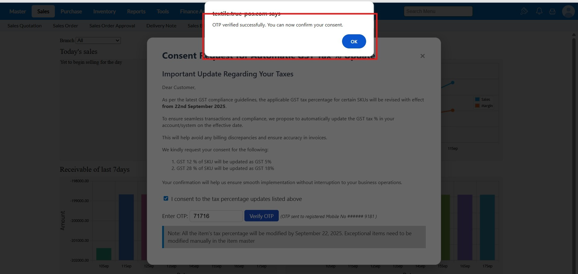 5. After clicking 'Verify OTP,' an OTP confirmation pop-up will appear.