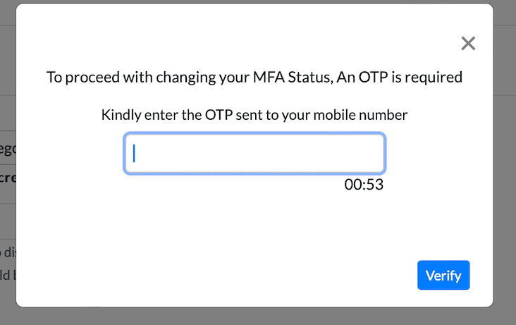 2.Once the user opts for 'Disable', OTP verification required.