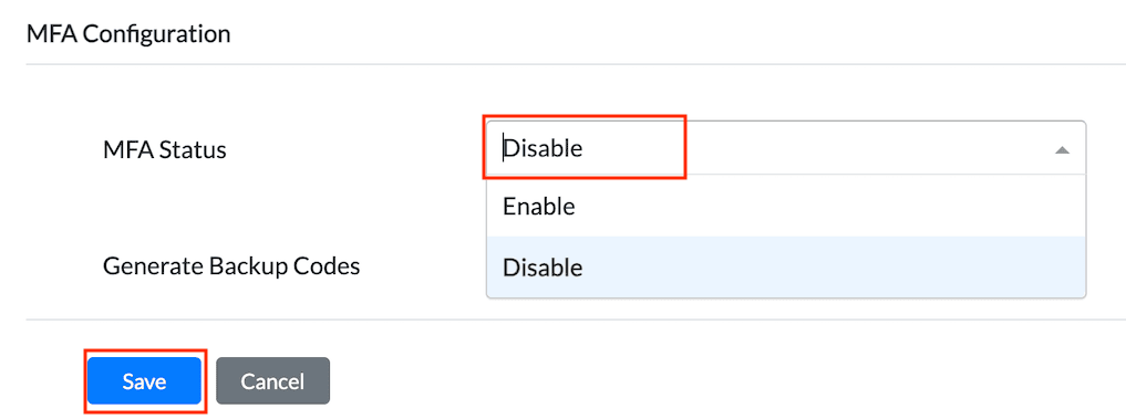 1.When the user enabled the MFA for their account, in Personalise -> MFA Settings, Disable option will be available (if MFA is not mandated by the Admin).