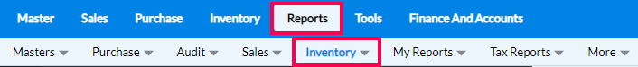 Step 1: In the man tab of RetailEasy on-cloud, click on Reports > Inventory