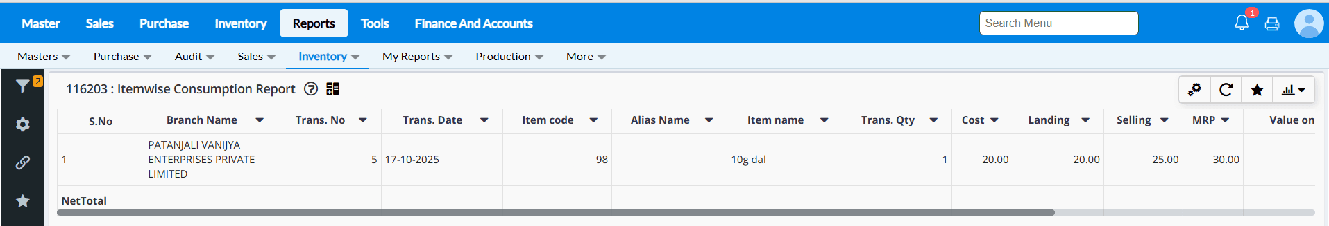 Answer : From Dashboard, go to Reports → Inventory → Stock Movement → Consumption Report.