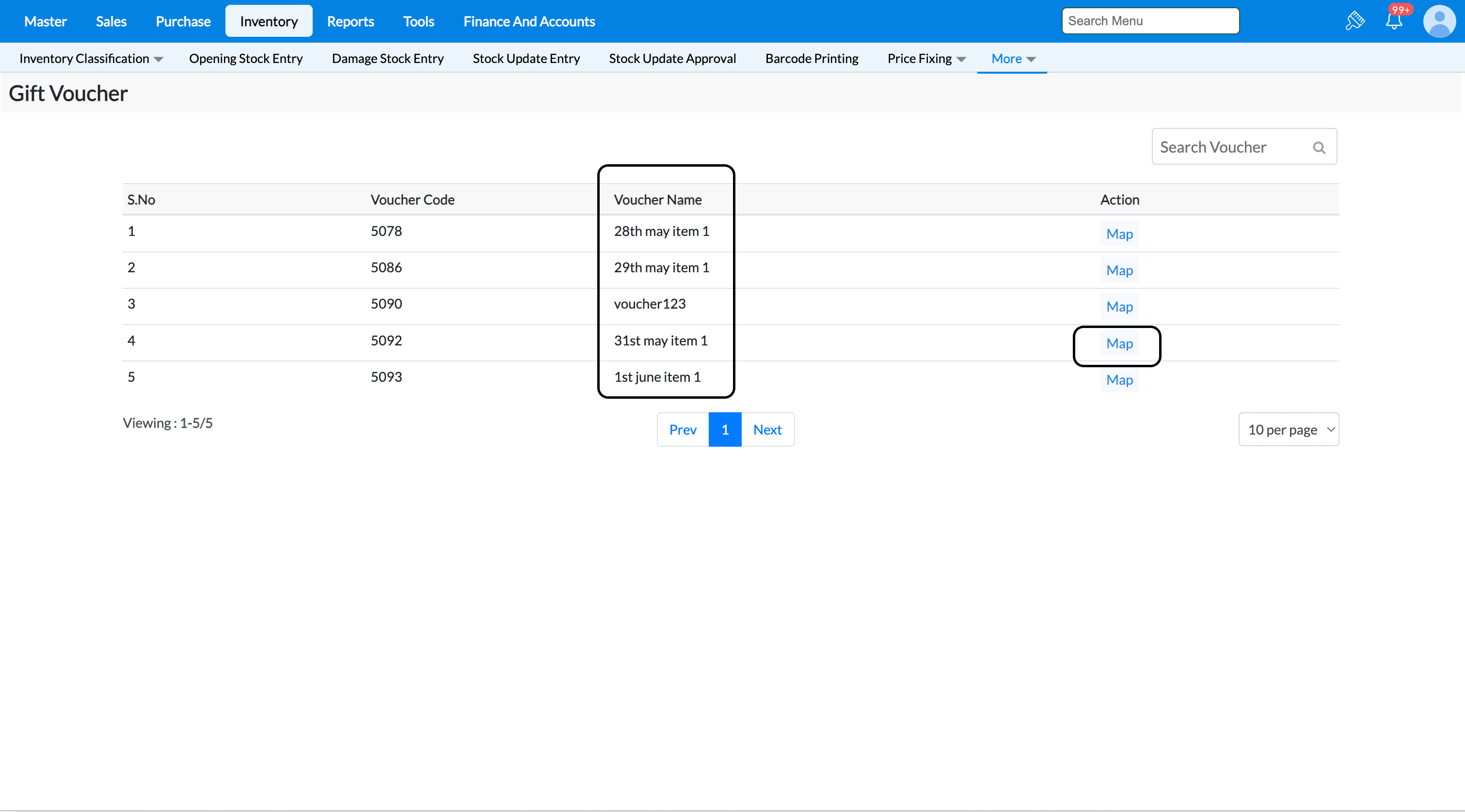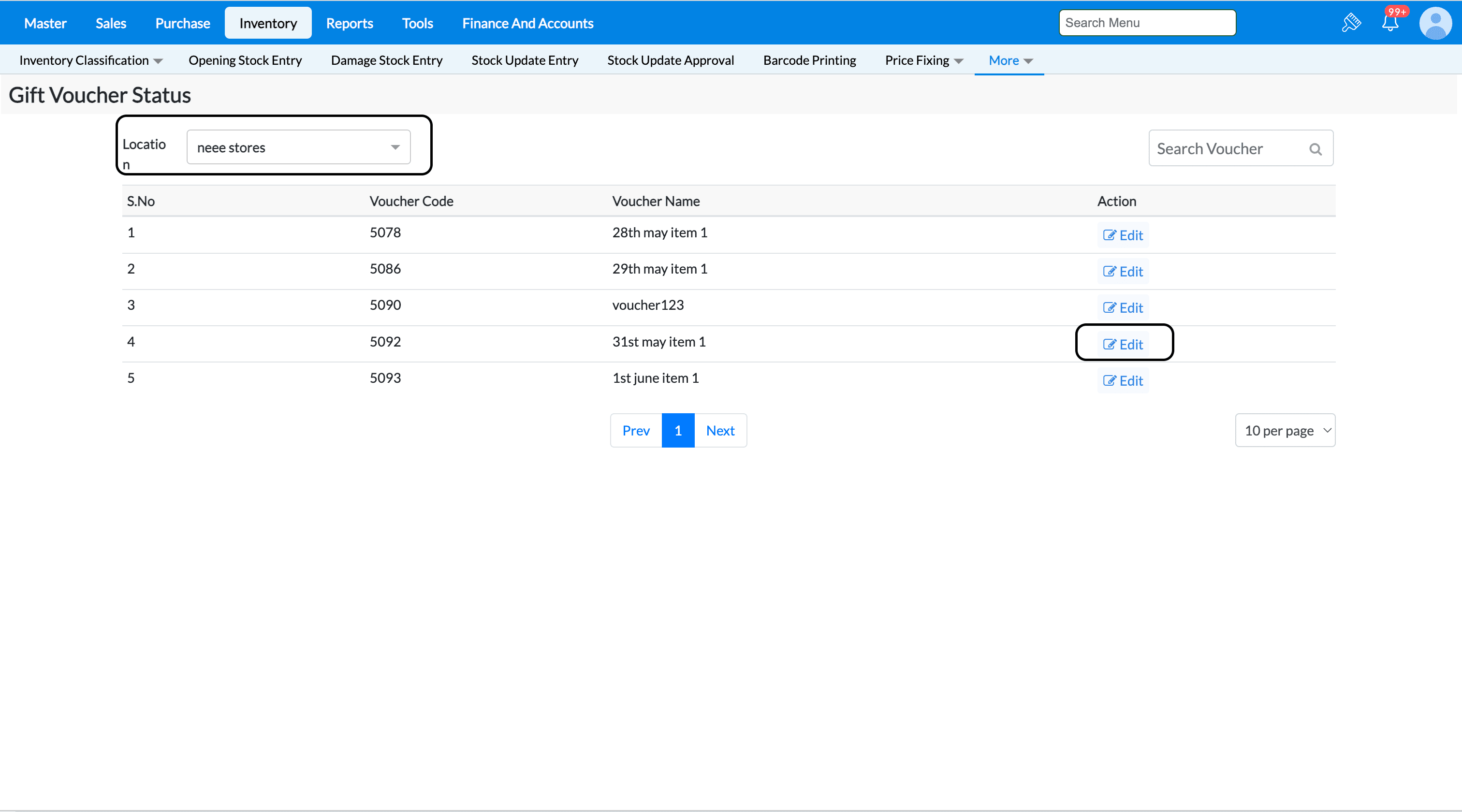 1. From the Dashboard, Go to Inventory → Gift Voucher Status.
