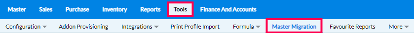 Step 1: In the main tab of RetailEasy on-cloud, click on Tools > Master Migration