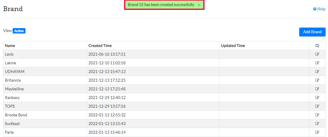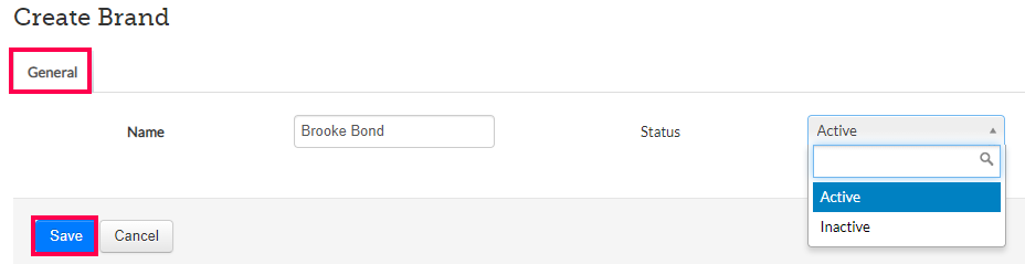 Status: Assign the Status as Active if the Brand's products are purchased to your store's inventory. Else assign Inactive