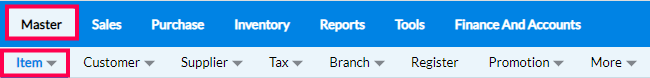 Step 1: In the main tab of RetailEasy on-cloud, click on Master > Item