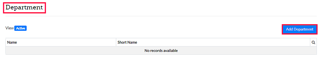 Step 3: In the Department screen, click on Add Department