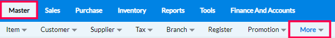 Step 1: In the main tab of RetailEasy on-cloud, click on Master > More