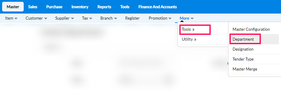 Step 2: From the drop-down of the Tools section, click on Department