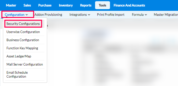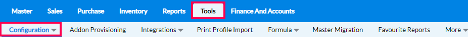 Step 1: In the main tab of RetailEasy on-cloud, click on Tools > Configurations