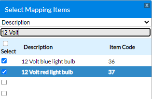 Press Enter in the Mapping Items field and choose the Mapping Items from the Select Mapping Item list pop-up by ticking all possible Ingredients that can be used as a replacement