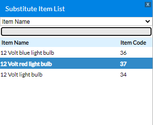 Click on the Substitute button and the Substitute Item List appears. You can filter the