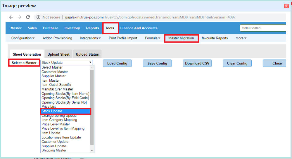 Step 1: Go to Tools-> Master Migration