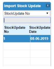 Answer - In the stock update entry screen, press Ctrl + F2 or click on Import SU button. The lov containing the stock update no and date will appear. The latest imported will added to the list below one another. Load the Stock update no and follow the above mentioned process to complete and save the stock update.