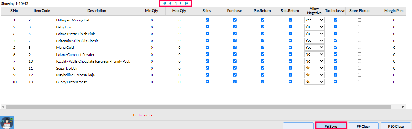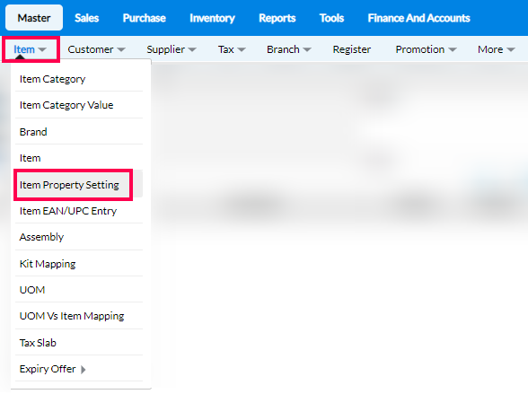 Any edit made to the Item Property Setting will be reflected in the Sales, Purchase, and Return screens.