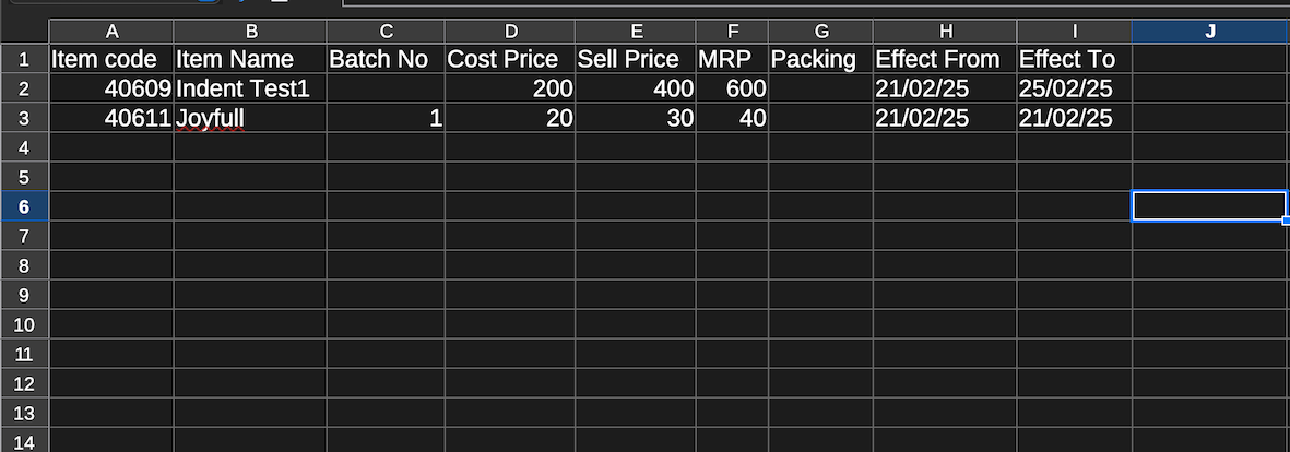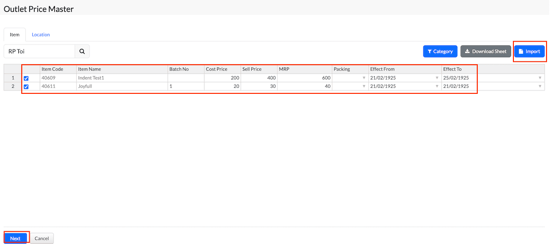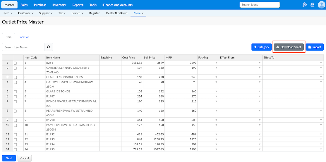 Purpose: The Outlet Price Master is used to modify the cost price, selling price, and MRP for a specific time period, applicable only to newly created purchase invoices.