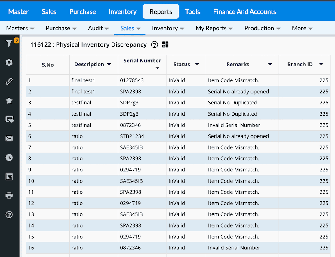 Purpose -The physical inventory screen is used to manually count and verify the physical stock on hand to ensure it matches the system quantities for serialized items, and it helps to identify discrepancies and ensure inventory accuracy during stock audits. This physical inventory screen is used only for serialized items to reduce stock levels to zero . You can use the import option to revert the stock for the respective serialized item based on the manual audit data.