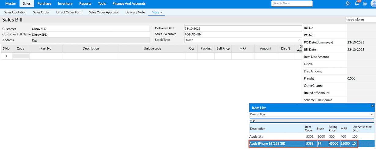 Q5. Price level vs item mapped price was not getting applied in the sales bill?