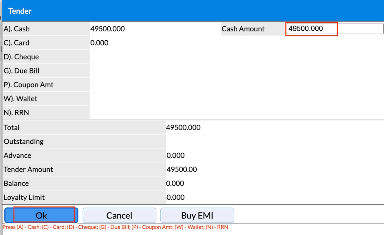 Click Ok to save the Bill.
