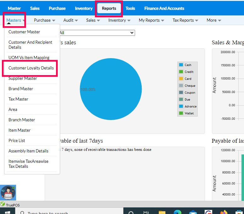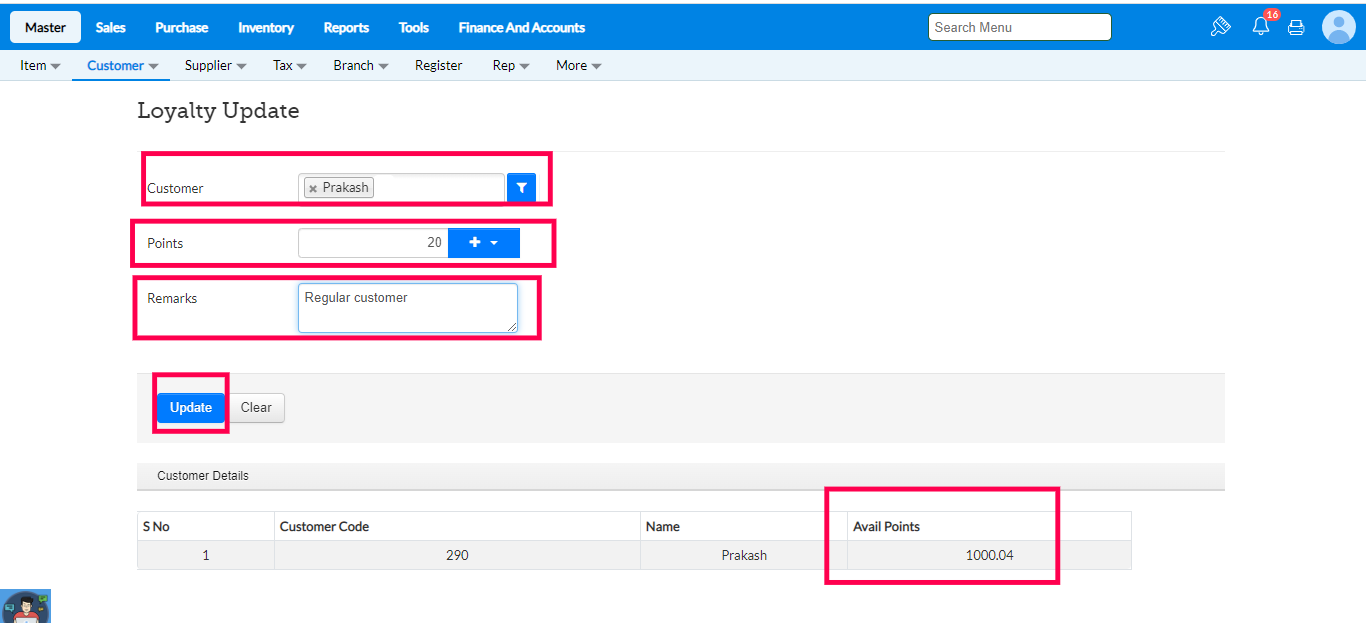 1. Goto >> Reports >> Master >> Customer Loyalty Details