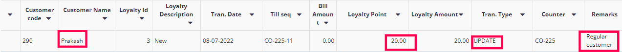 Get instant visibility and accountability of the additional points accrued to the Customer's Loyalty account by the Loyalty Update process from Reports