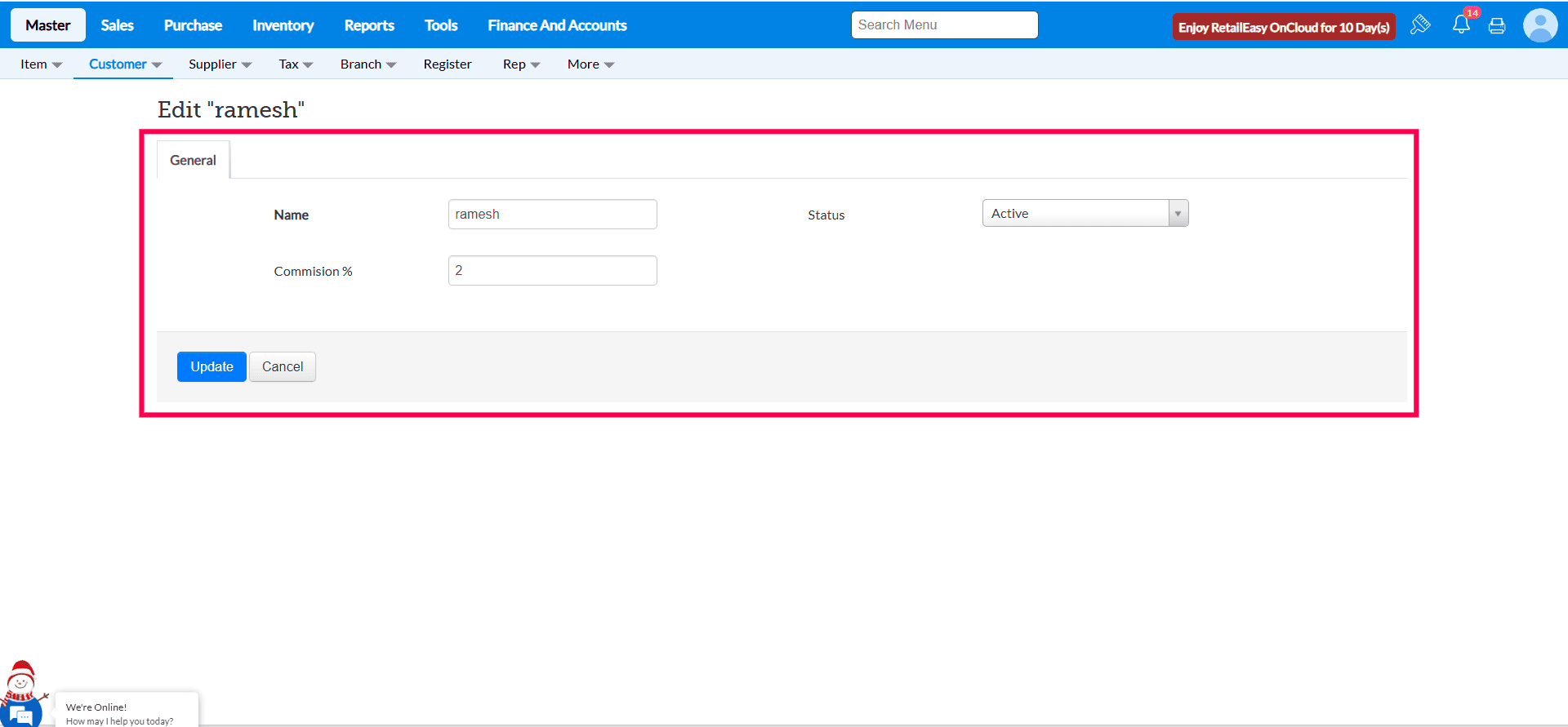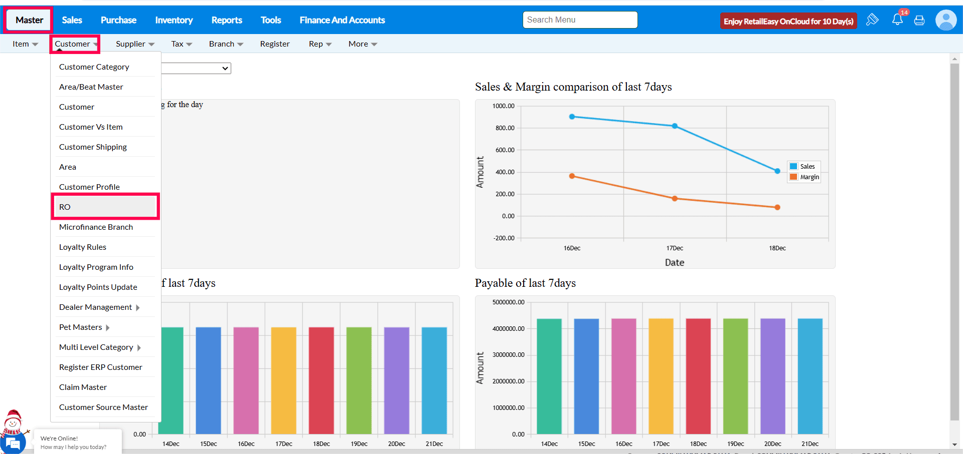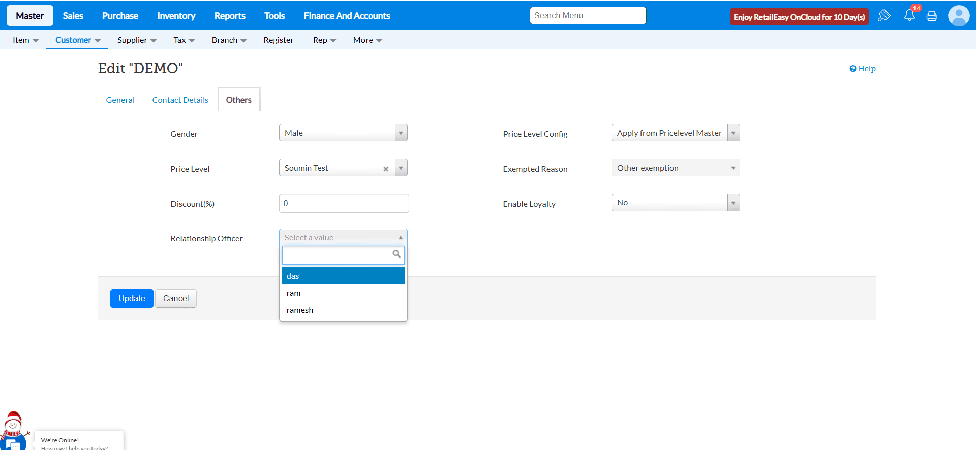 Navigate to Master > Customer. (To create a customer, click on Customer.)