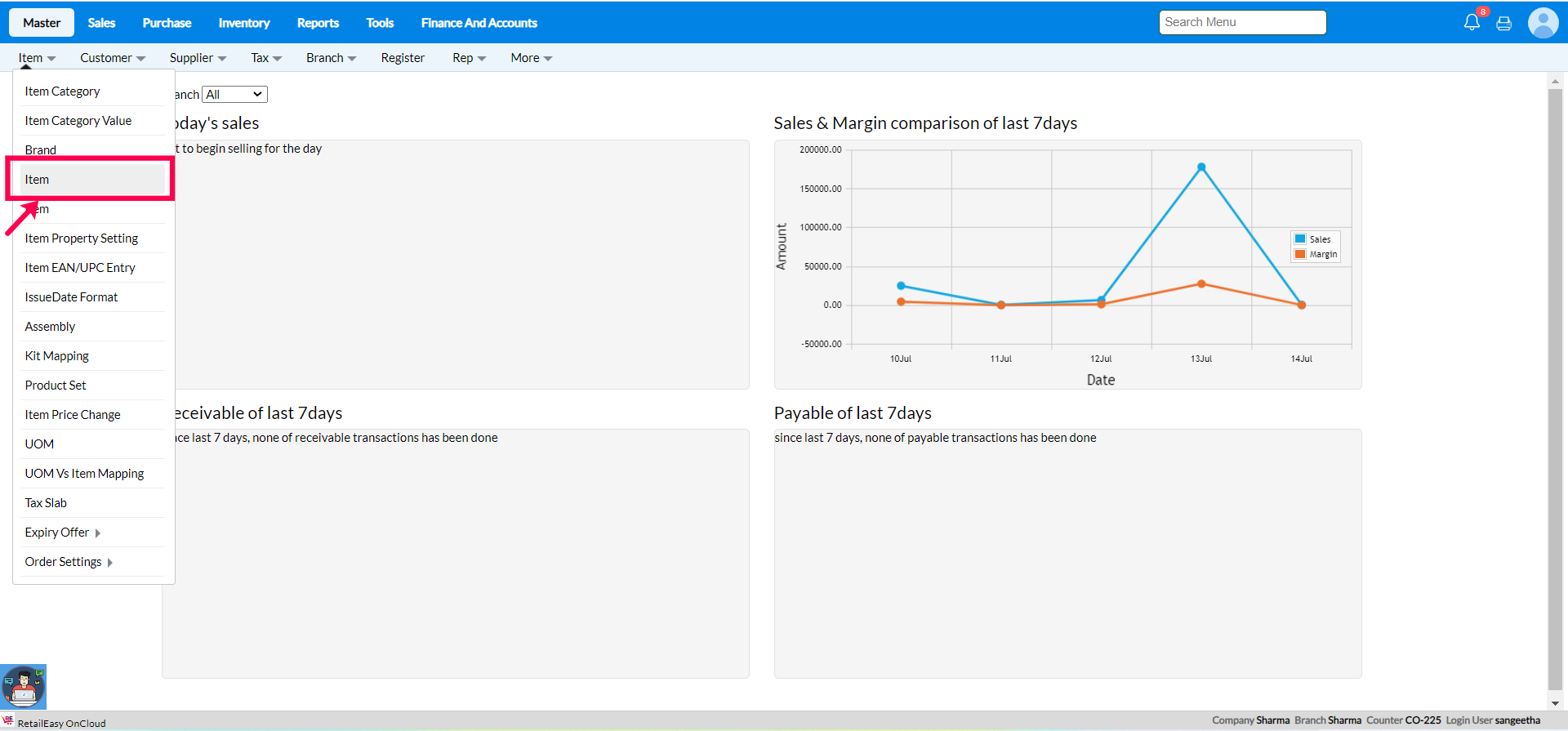 Step 1: Go to Masters >> Item >> Item master.