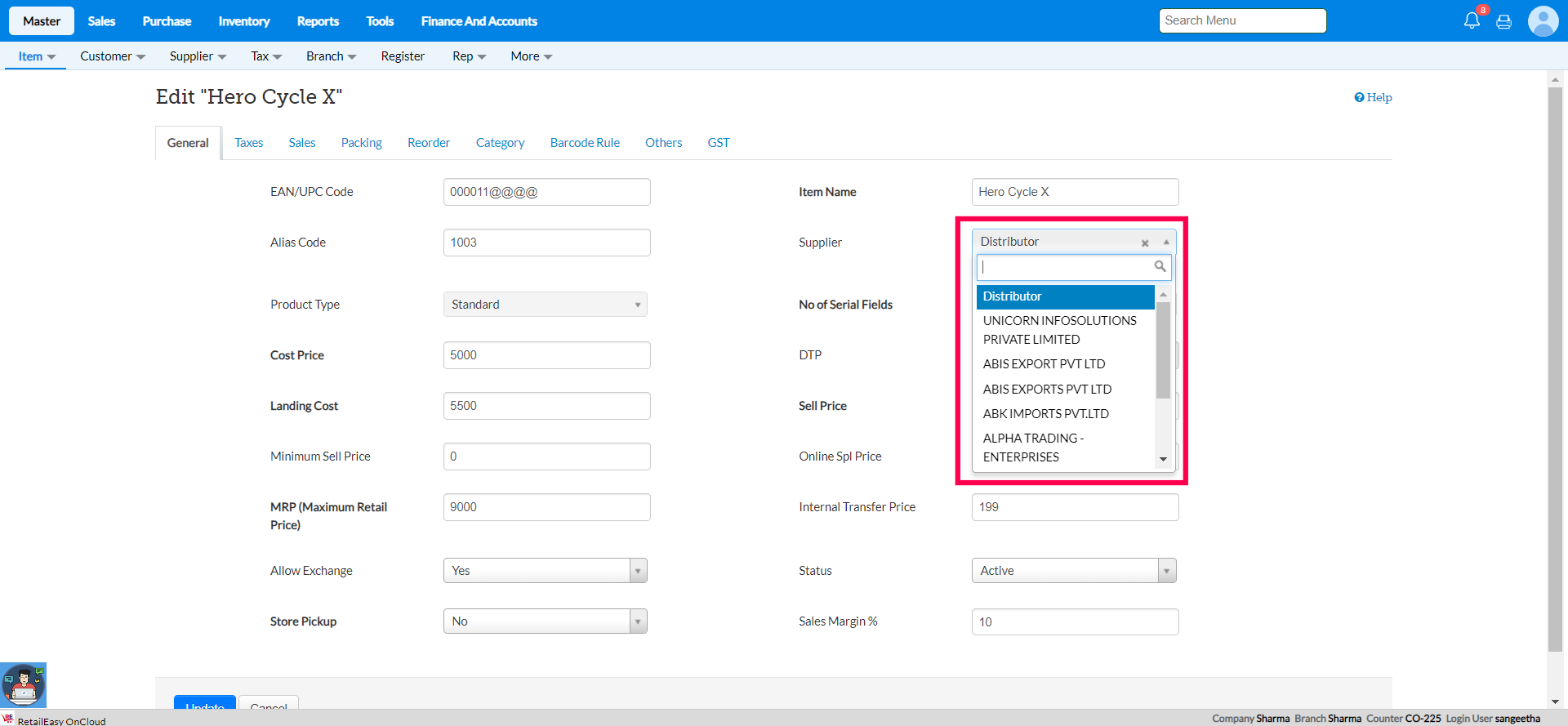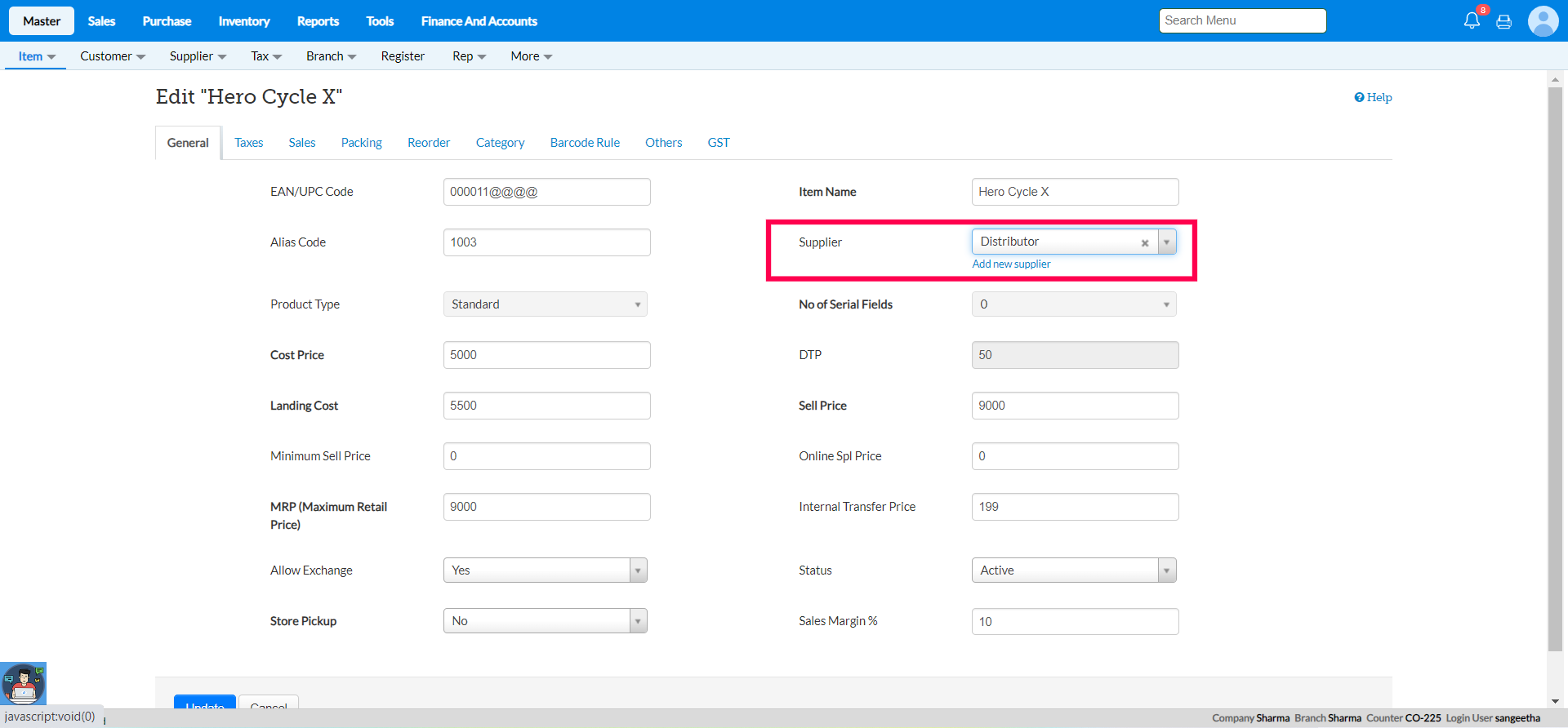 Step 3: In the 'Main Supplier' field, press 'Space Bar' Key to view the list of the suppliers.