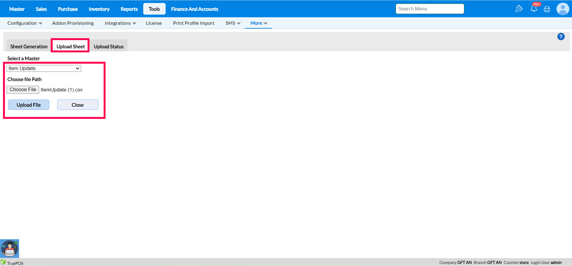 Step 6 : After filling up the sheet, Click on Upload Sheet and select the master then browse the file and click on Upload file. Once uploaded will get message as successfully uploaded.