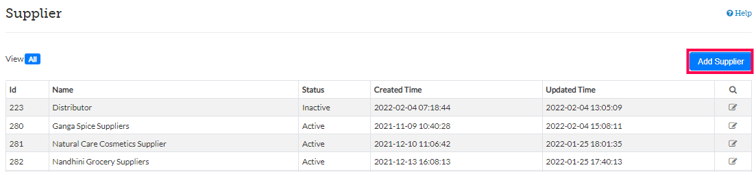 Status - Assign Active if the Supplier actively supplies to your store and avail the Supplier in the Purchase screens. Assign Inactive to delete the Supplier